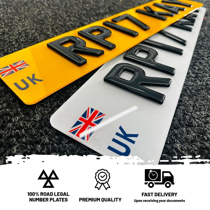 4D with 3D gel yop UK Number Plate with Union Jack Flag/Valid to Drive in Europe/EU